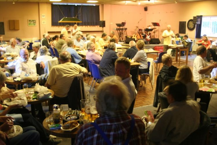 As part of a week of events at Crossways, DWC played a gig on the smallest stage in the world ... which, apart from the PA with no foldback, Tim losing his voice (it was his turn), the average age of the audience being "higher than expected" and it being swelteringly hot, it all went rather well ...