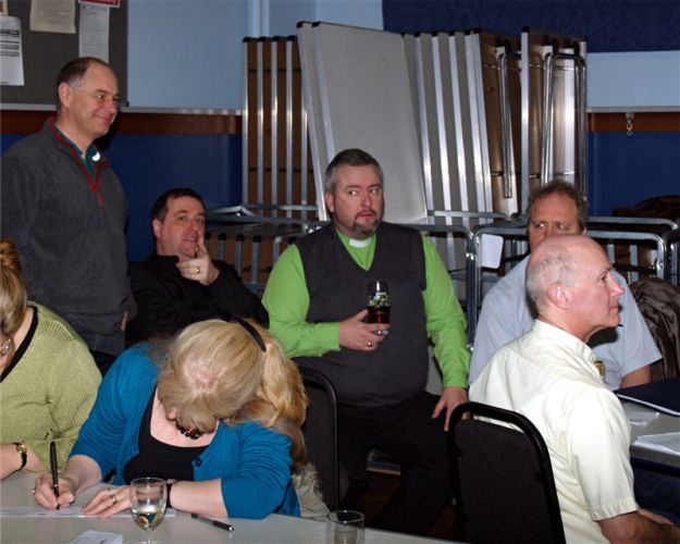 An eventful evening ... Laurie was dragged, kicking and screaming to a Conservative Club, two old ladies stopped the gig cos we had plugged into the same socket they used for their Bingo machine (honest!) and it was a case of the disappearing and reappearing keyboard player as Graham succumbed to a bug which meant that midway through the gig .... no, you don't want to know. Anyway, in between that and Geoff breaking a string and us coming to terms with having foldback ear pieces, it was quite an evening ... Get well soon, Graham.